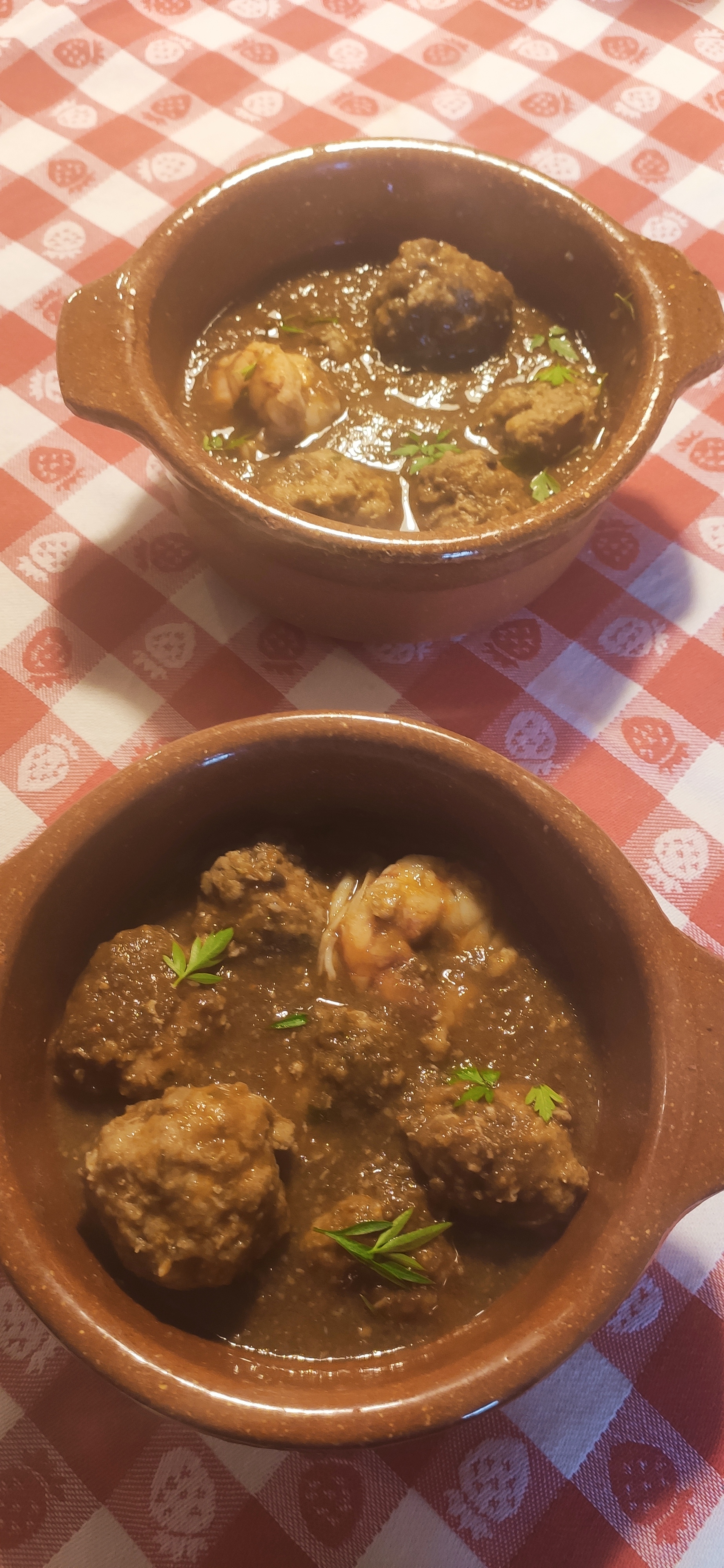 Espectacular receta de albóndigas de ternera con salsa de sepia y gambas, y facilísima con thermomix, sin tener que enharinar ni freír las albóndigas.