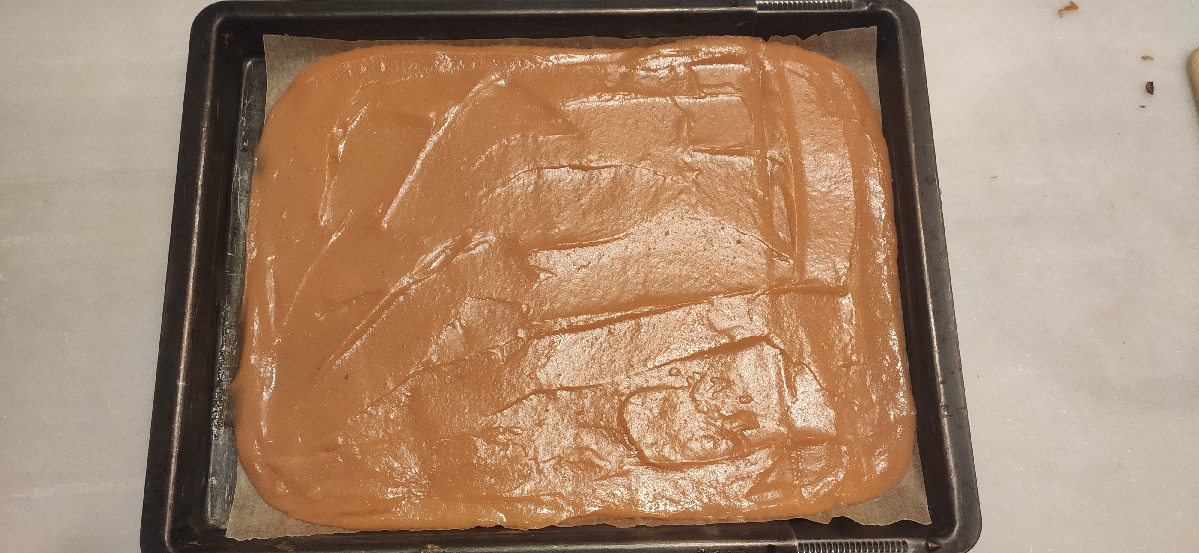7. Extiende el contenido del vaso en la bandeja preparada. Deja enfriar.