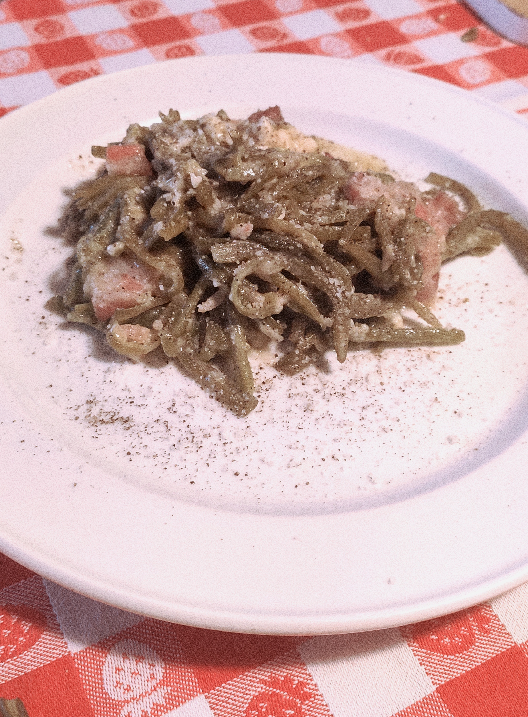 Alubias verdes a la carbonara