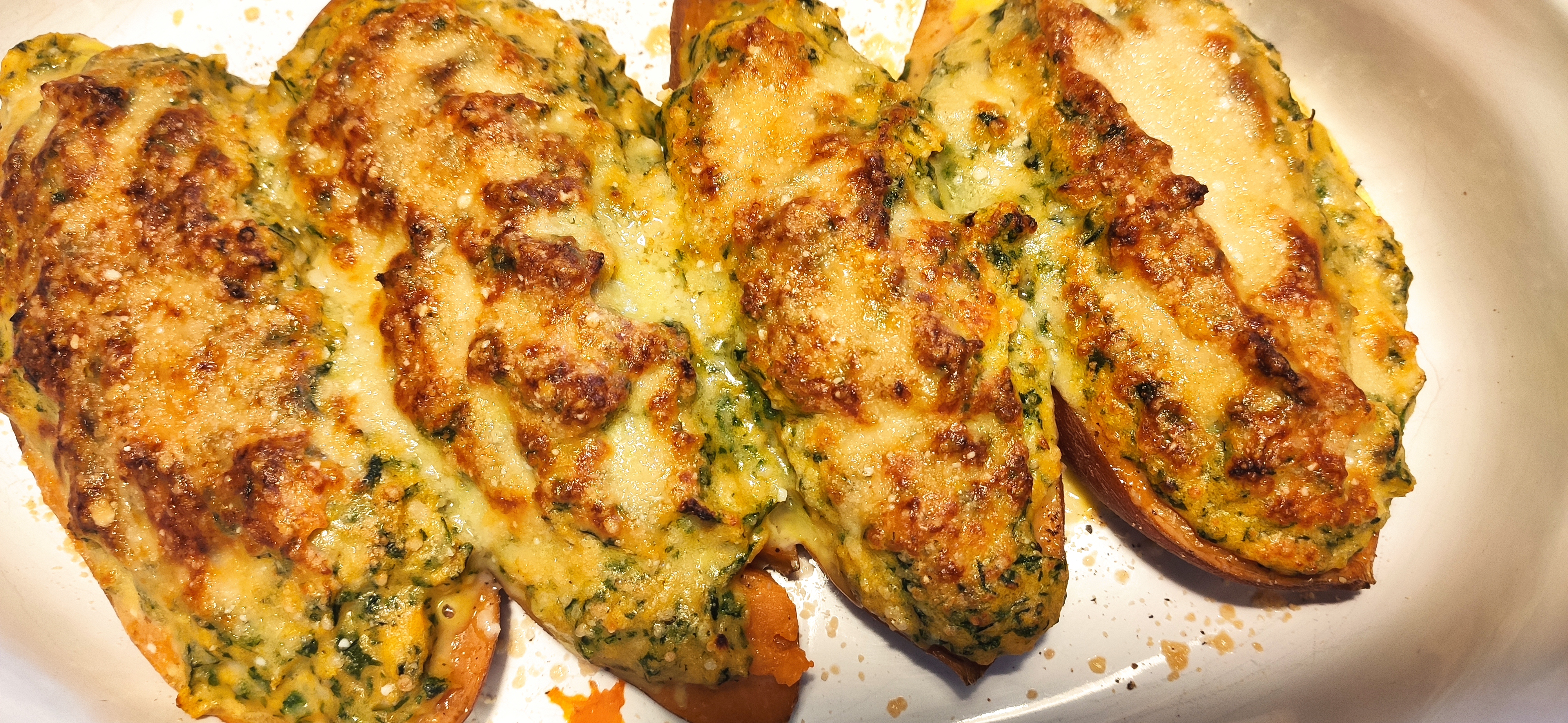Boniatos rellenos de acelgas y atún