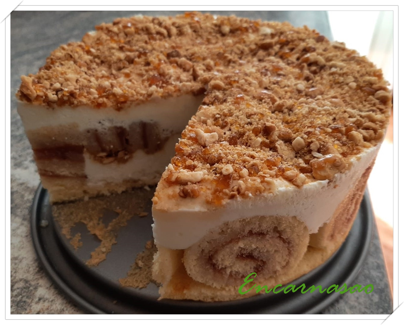 Sale en la receta como helado celestial, yo prefiero hacerle el brazo de gitano y cortar un redondel de base y hacer un brazo de gitano con el resto de la plancha y cubrir al rededor del molde.