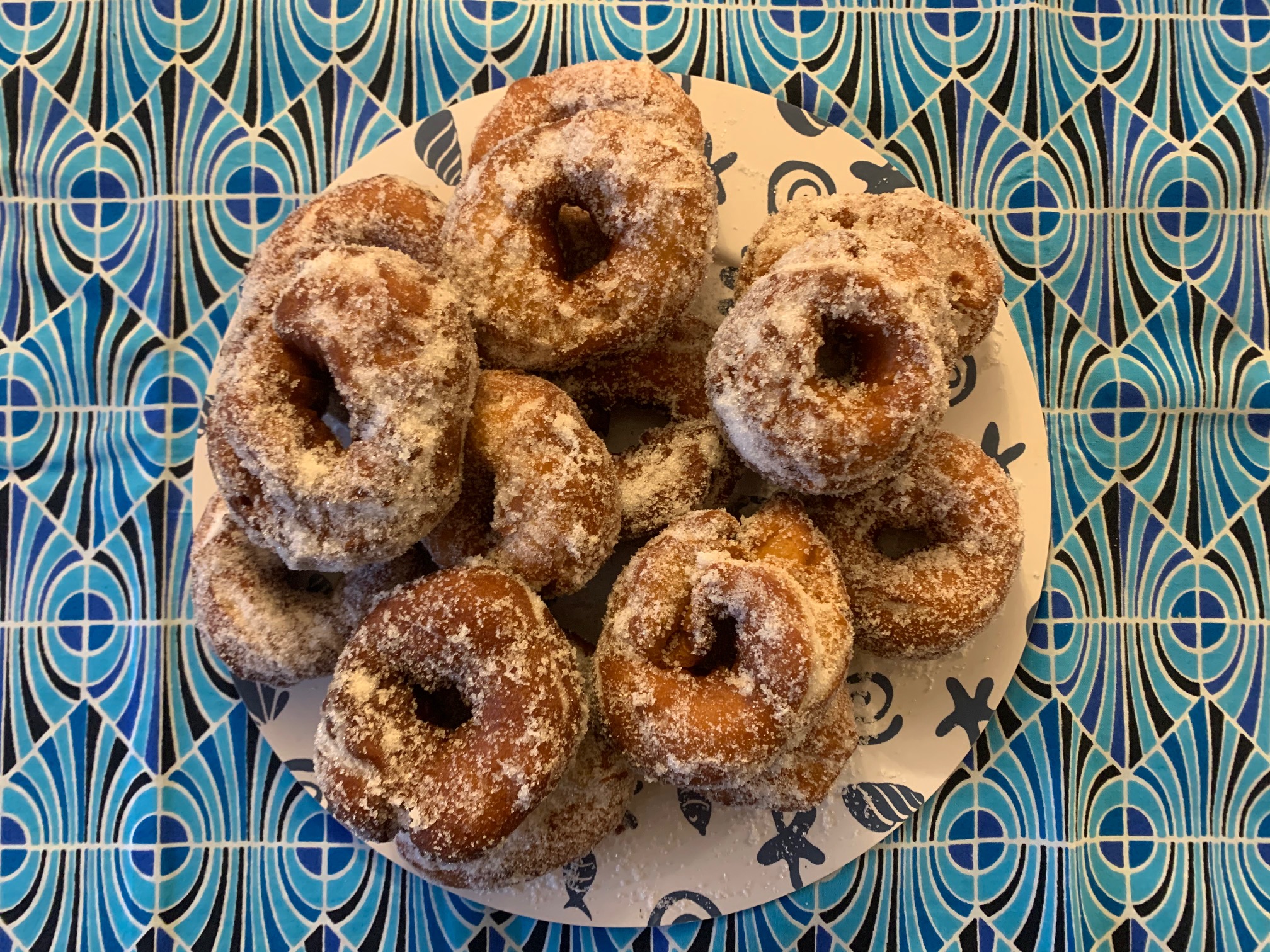 Sirva rebozadas en una mezcla de azúcar y canela