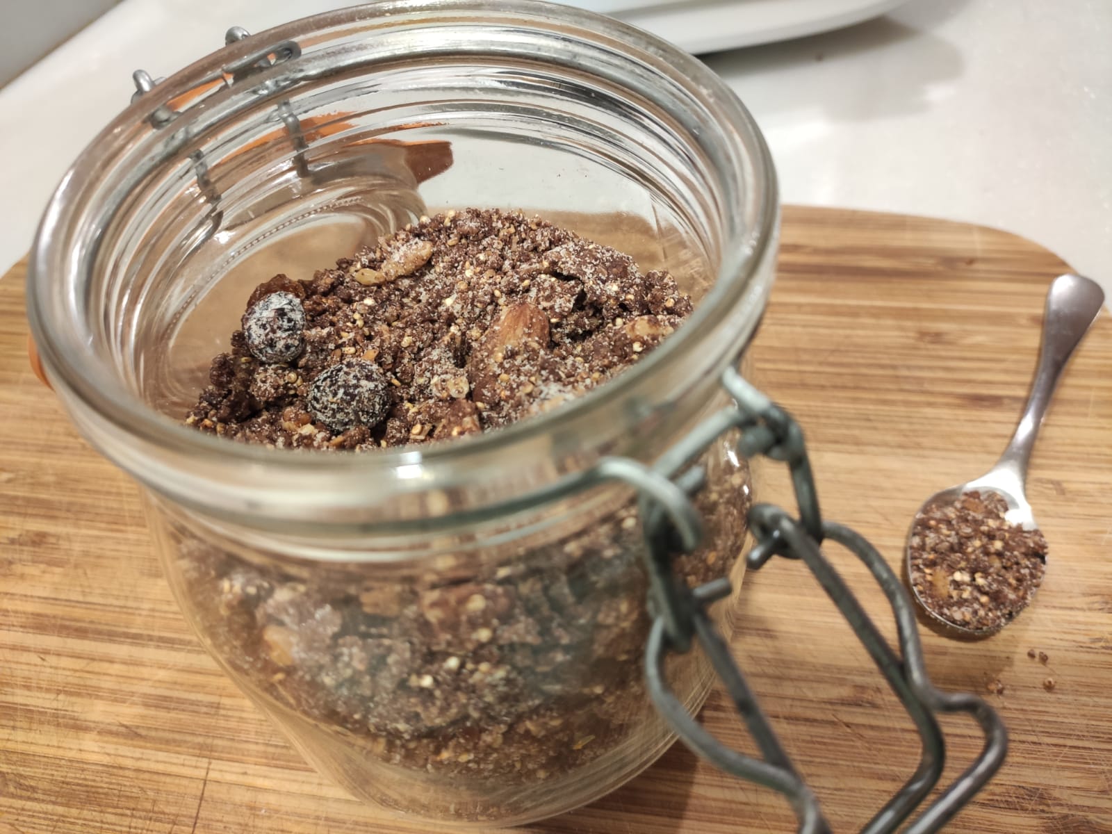 - Guardar en un recipiente hermético y utilizar en el desayuno, merienda, o cena con leche, yogures o bebidas especiales (de arroz, de avena....) También se puede tomar con snacks de aperitivos o picoteo entre horas.