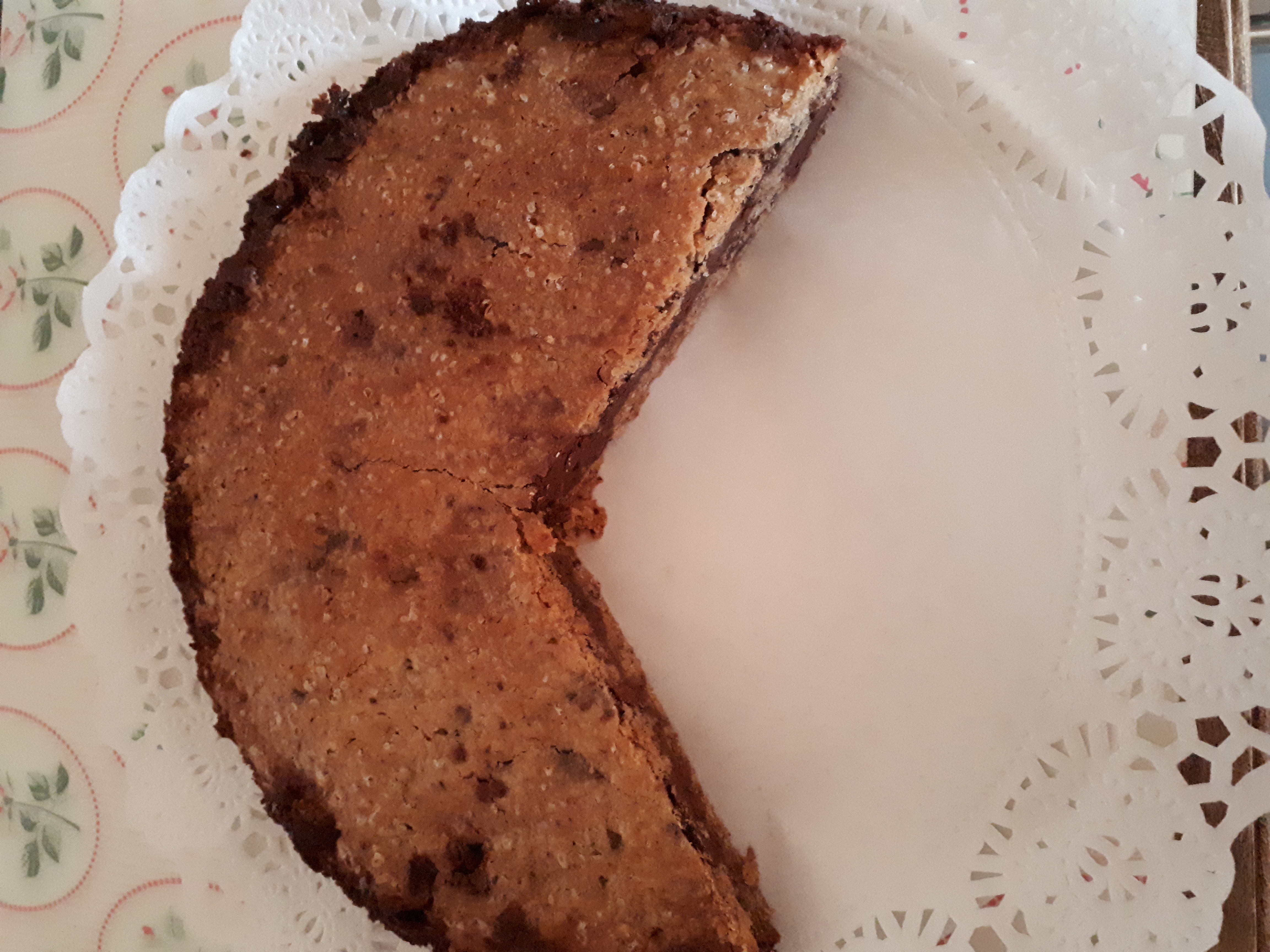 - Incorporar las pepitas de chocolate y mezclar 5 seg/vel 6. Retire la masa del vaso y dividirla en 2 bolas. Cubrir un molde de 24 cm con papel de horno y extender con la mano una de las bolas. Extender la crema de cacao y avellanas.