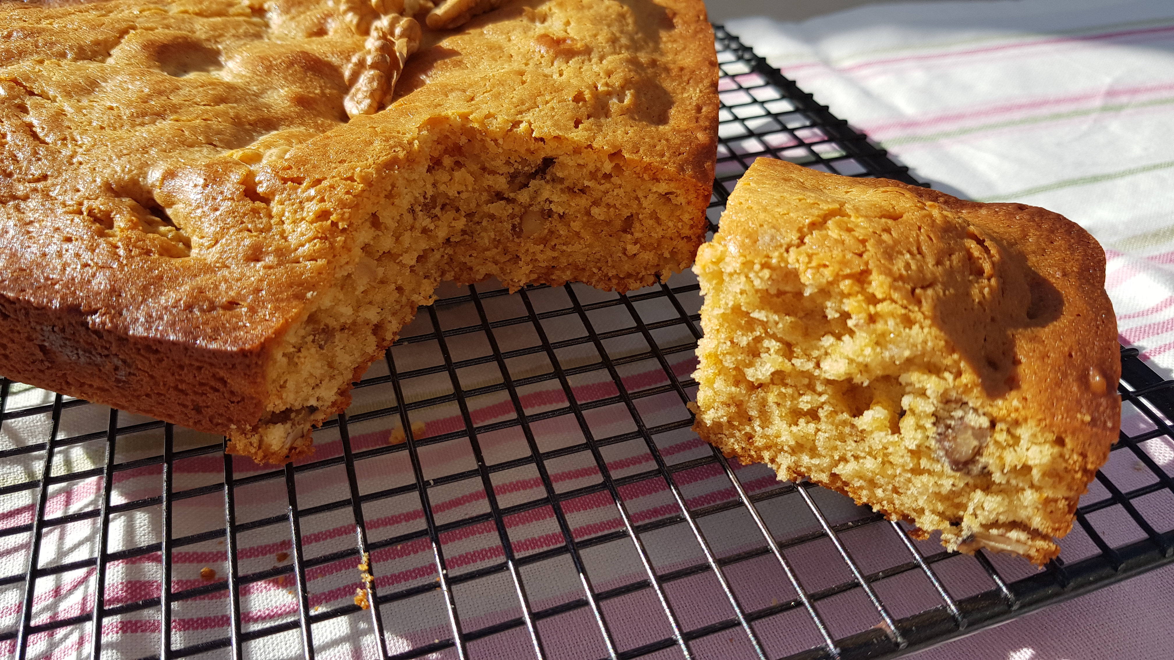 - Hornear durante 20 minutos (180°C). Retirar del horno, dejar templar y desmoldar sobre una rejilla. Una vez frío, corte en 16 cuadrados de 5x5 cm y servir.