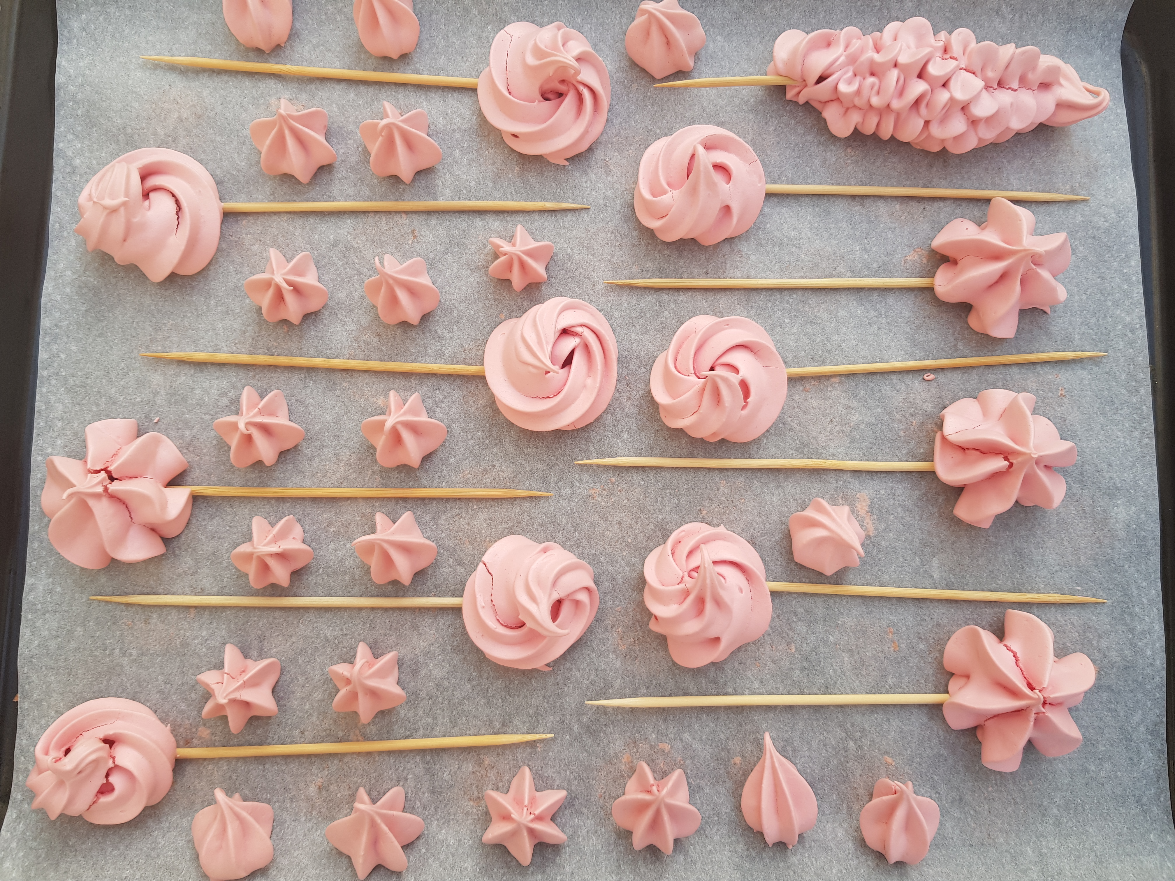 - Hornee durante 60 minutos (110°C). Después, apagar el horno y dejar las piruletas y merenguitos dentro durante aprox. 3 horas o hasta que enfríen por completo.