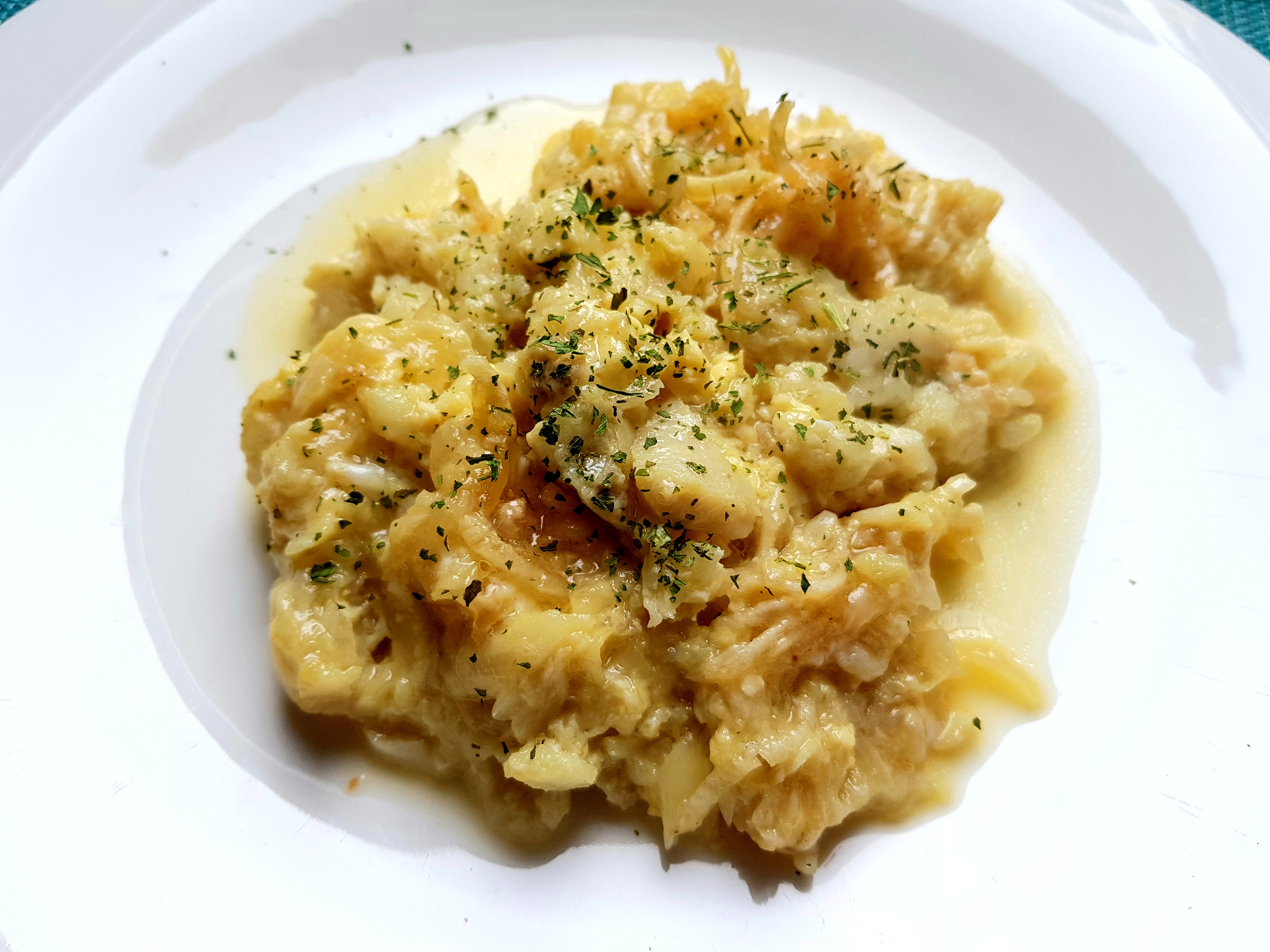 - Añadir el bacalao y rehogar 2 min/120°C/giro inverso/vel 1.