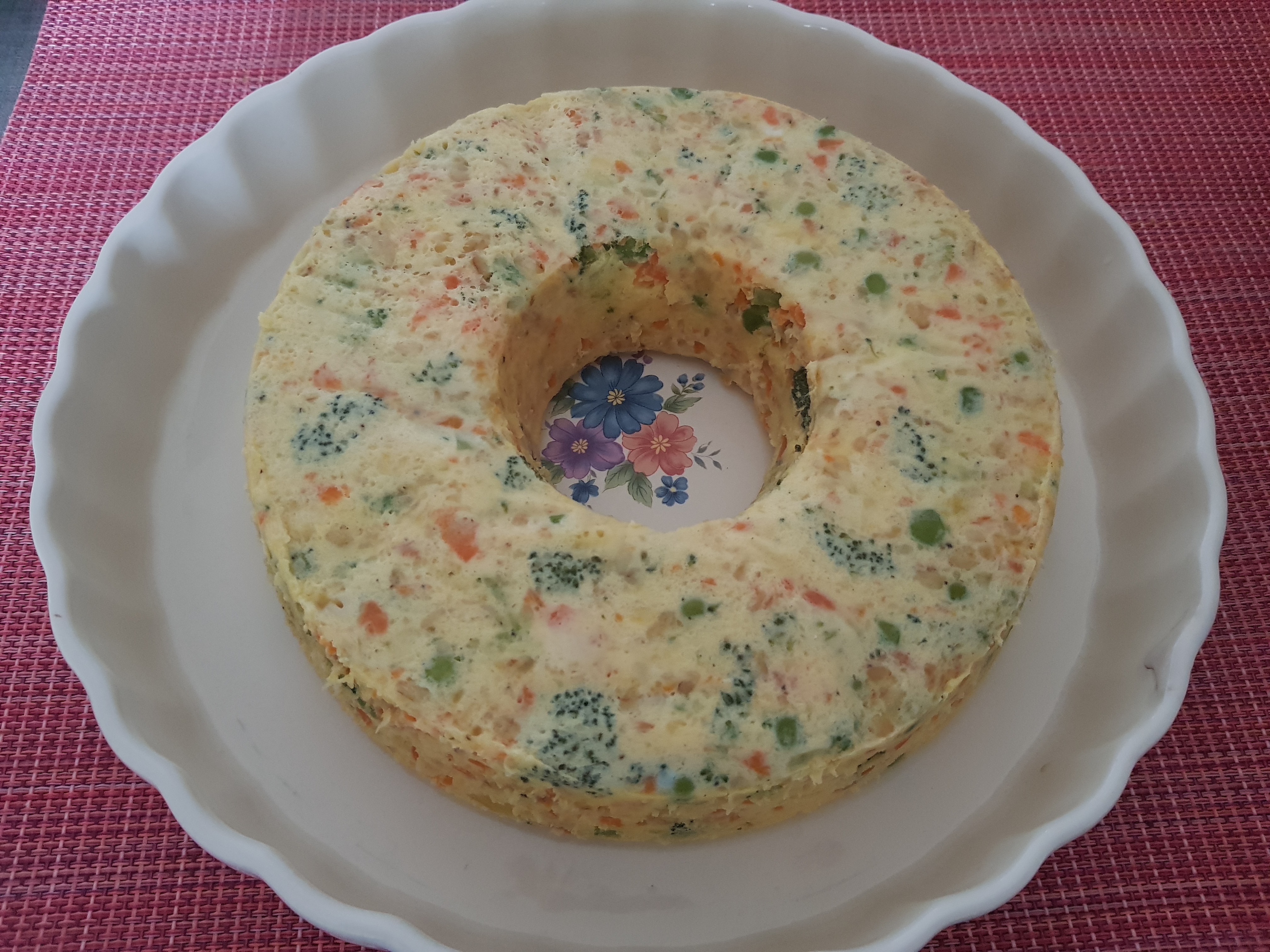 - Añadir al vaso el brócoli y los guisantes cocidos, mezclar con la espátula y verter la preparación en el molde preparado, y que entre en el VAROMA.