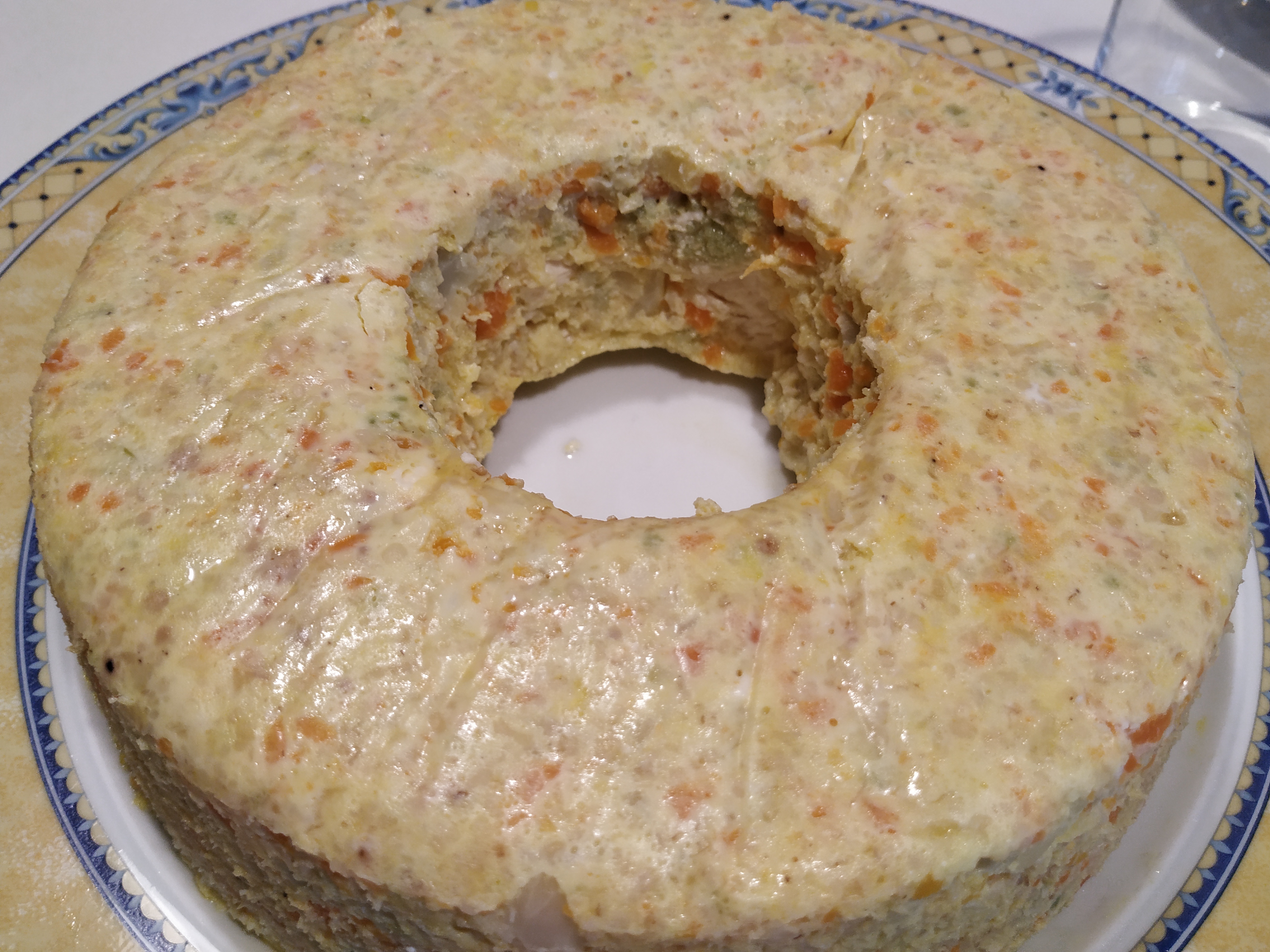 - Añadir en el vaso el romanescu cocido, mezclar con la espátula y verter la preparación en el molde preparado, tener encuenta que debe entrar en el Varoma.
